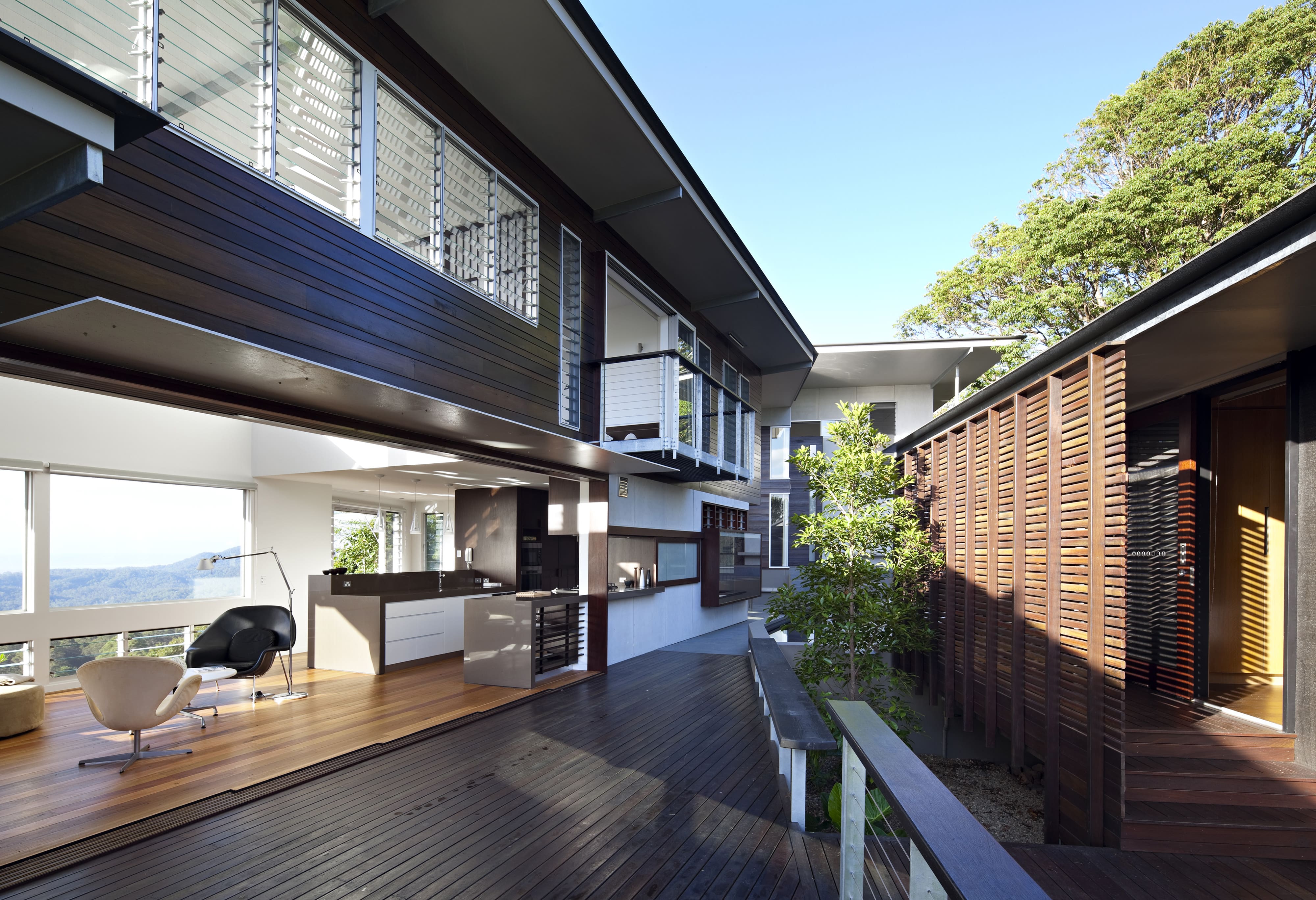 Sources of inspiration for modern home designs may come from far-off times and places. The Glass House Mountains House explores a seamless connection to landscape.