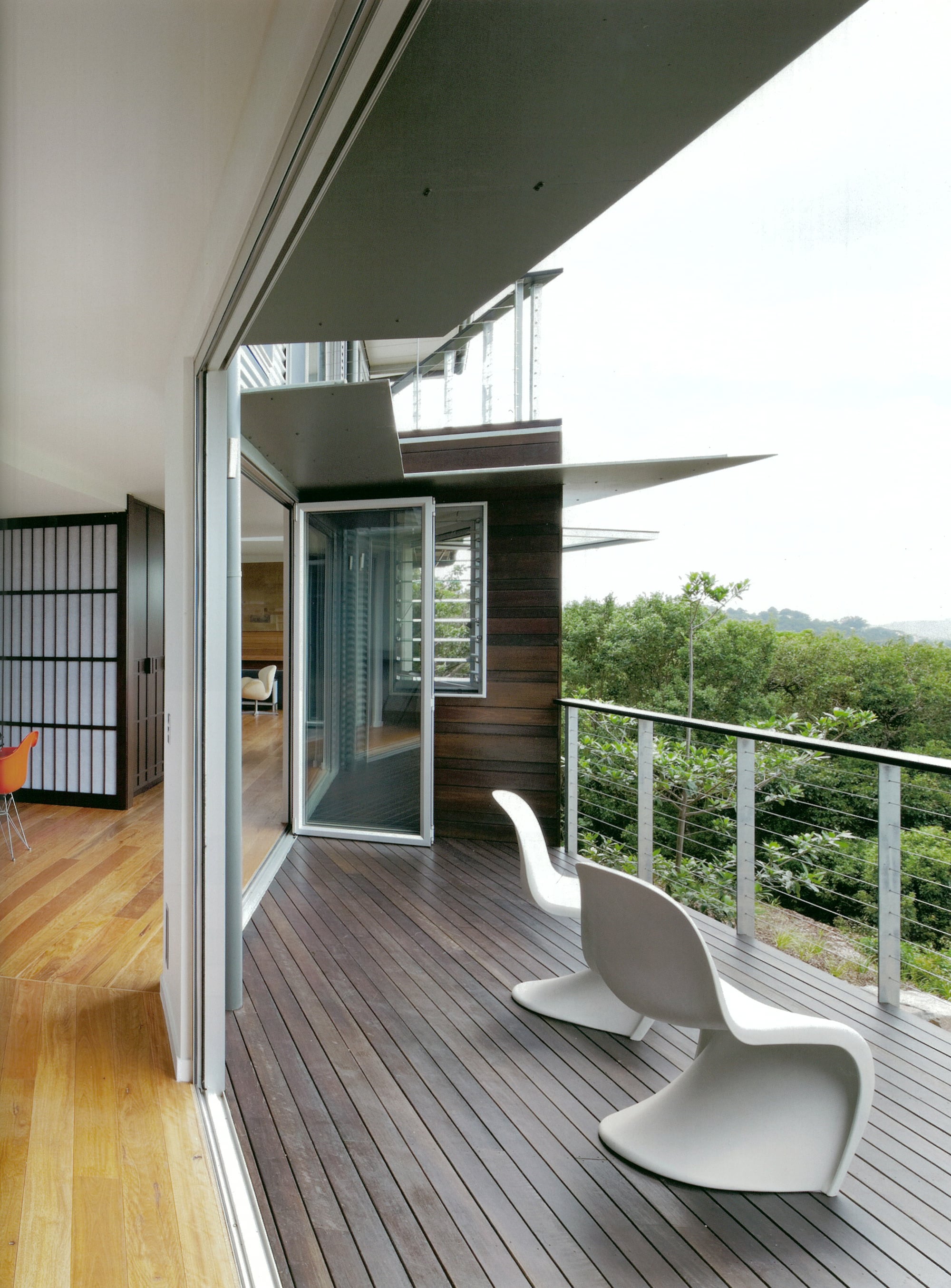 Perched on the edge of the remnant rim of the Glass House range, the Glass House Mountains House was designed for expat clients living in Romania. The house is designed to engage with its site’s topography, orientation, views and vegetation.