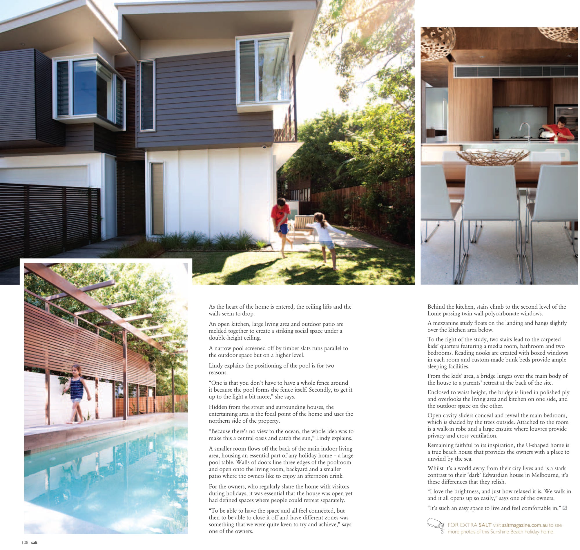 Designed for interstate clients and nestled in Sunshine Beach, is a modern, low maintenance family holiday retreat that plays homage to the original beach shack. Bark have created an ‘oasis of leisure’ within the relatively tight confines of its coastal site.