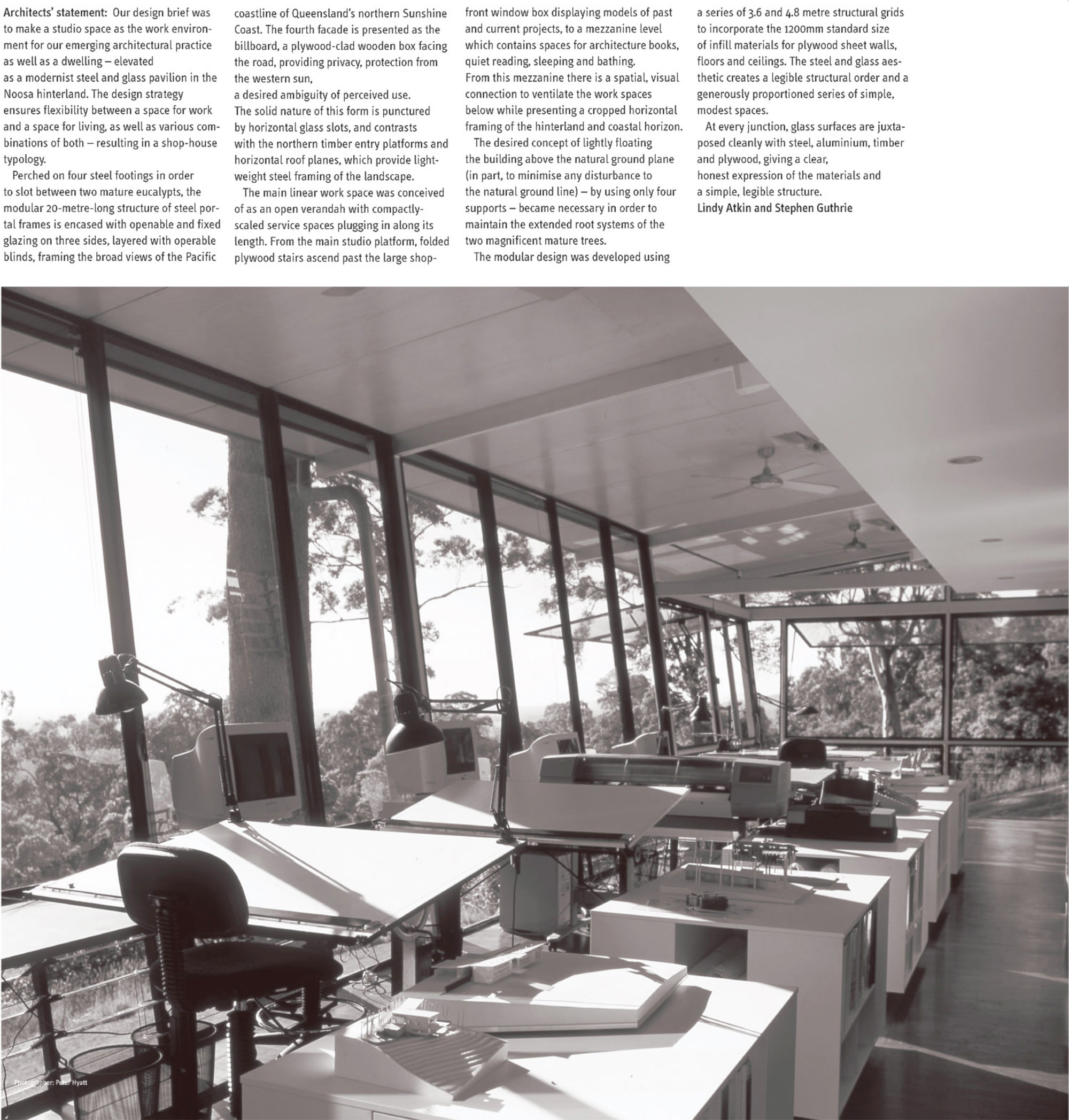 At every junction, glass surfaces are juxtaposed cleanly with steel, aluminium, timber and plywood, giving a clear honest expression of the materials and a legible structure.