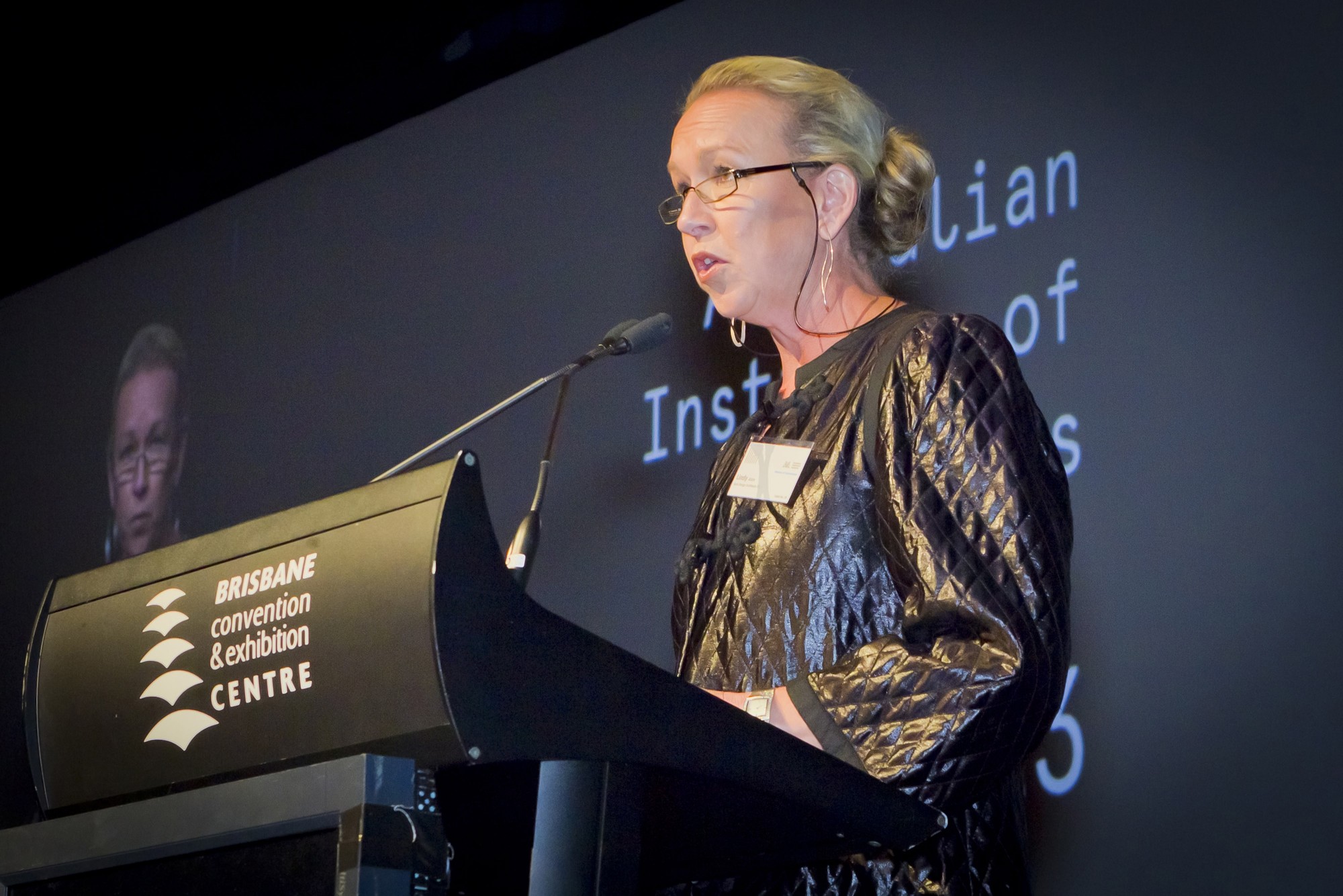 Lindy was announced by the President of the Queensland Chapter, Shane Thompson, to be the first female to host the state awards event, so she accepted the position with great pride and enthusiasm, receiving congratulatory feedback from attendees for her professional role on the night. The event and exhibition of award finalists were designed by creative directors, Kirk (formerly Richard Kirk Architect).