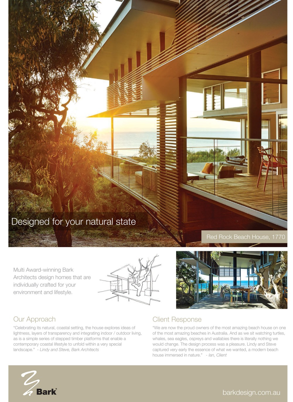 This subtropical beach house is located on a beautifully vegetated site on a remote Central Queensland beach, nestled into its natural coastal landscape, providing its occupants with an inextricable link to the landscape and the Red Rock headland.