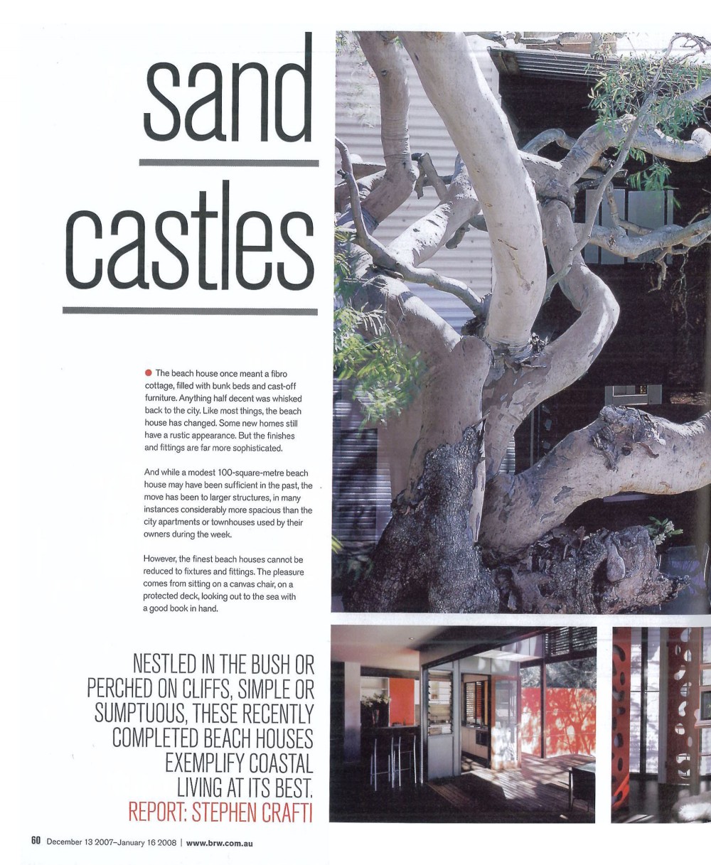 Business Review Weekly, Rich Summer Flagship Edition explored the design concept of sandcastles and tree houses. Marcus Beach House situated 250 metres from the beach is a private oasis, with a 100 year old Moreton Bay Ash, as a centrepiece.