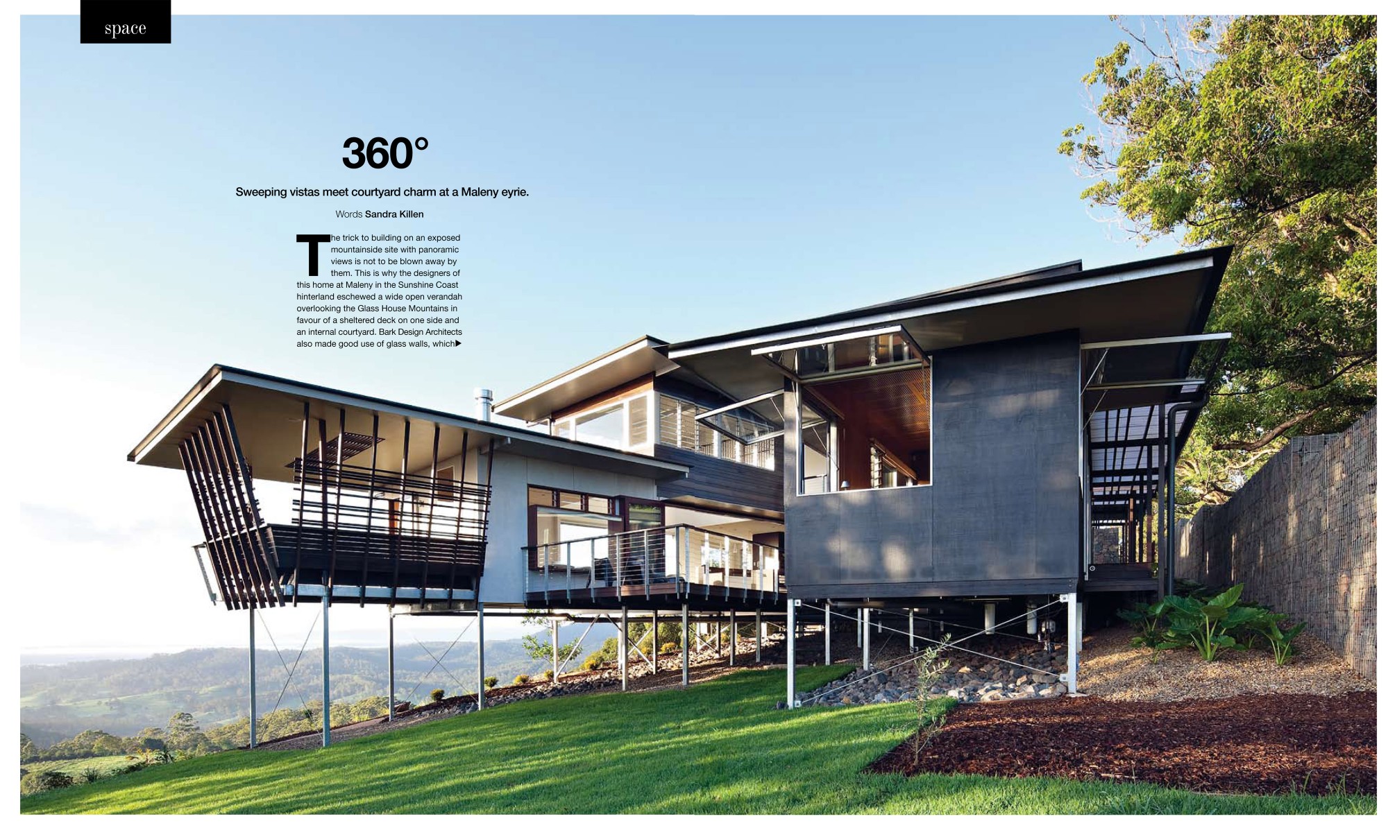 Entry to the home is via the courtyard, which incorporates are restful Japanese-style water garden and then through a dramatic 4.5m tall door. The spaciousness created by the high ceilings and open plan design is balanced by cosy nooks and the warmth of recycled blackbutt timber floors.