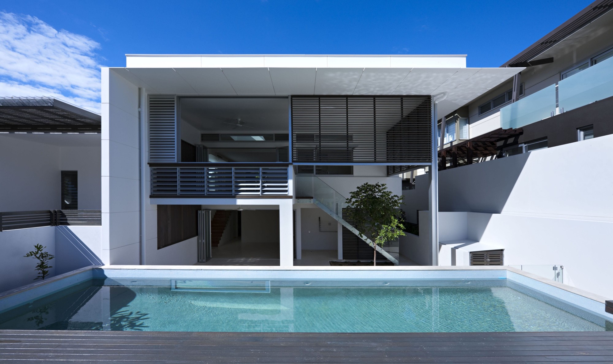 Two individual house sized apartments, creates a private ‘oasis’ and feeling of calm where boundaries between internal and external spaces are carefully ambiguous. Oriented to the north, both apartments are arranged to maximise Pacific Ocean views to the south. Private courtyards, swimming pools and generously-proportioned screened outdoor rooms celebrate outdoor living, while spaces for cooking, eating, living, lounging, sleeping and bathing all exude a contemporary coastal feel for luxury living in the subtropics. Oriented to the north, outdoor living opportunities are maximised to the northern aspect whilst framing Pacific Ocean views to the south.